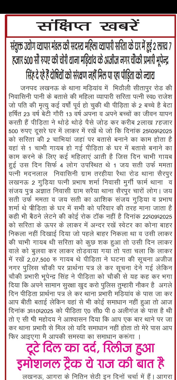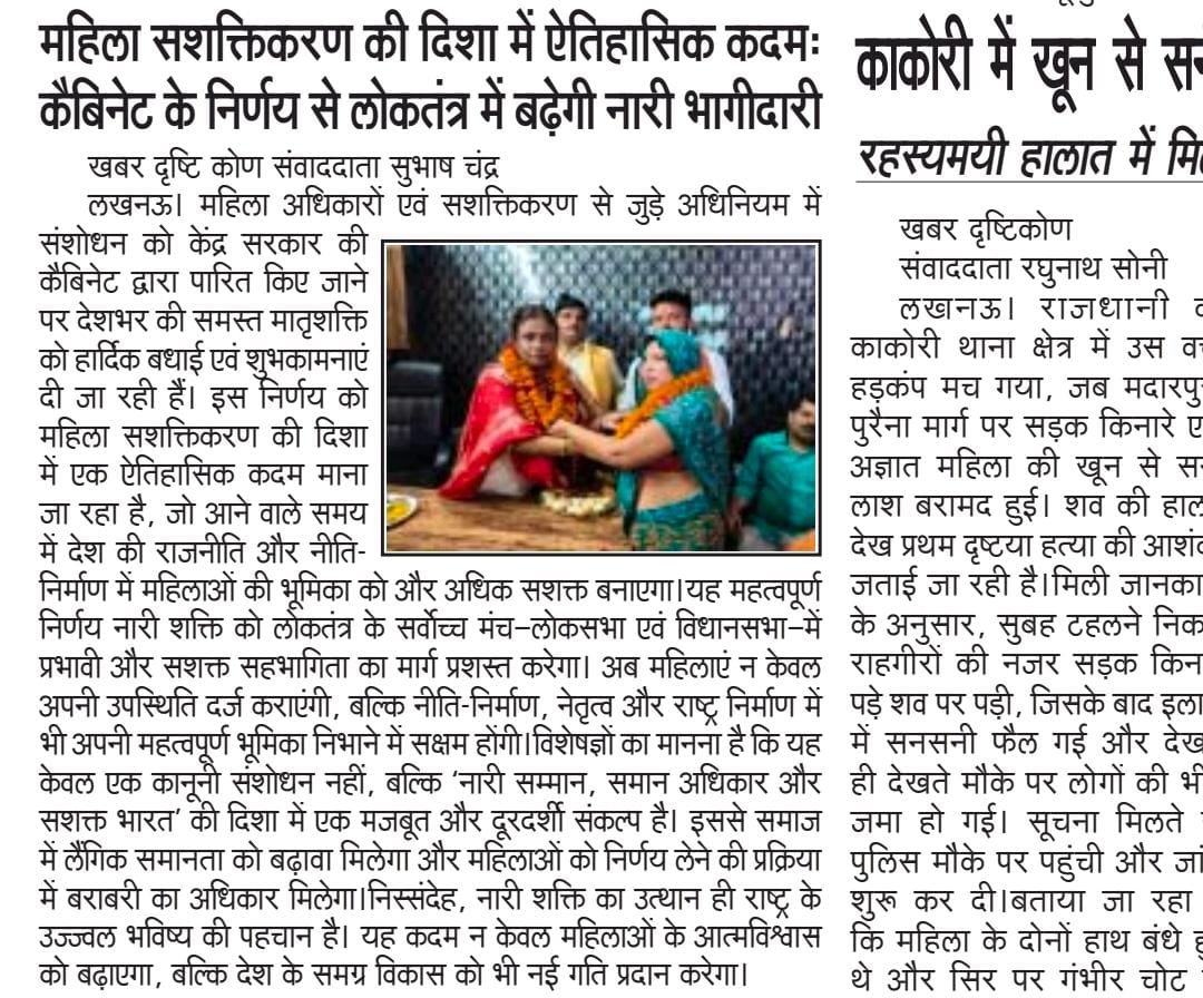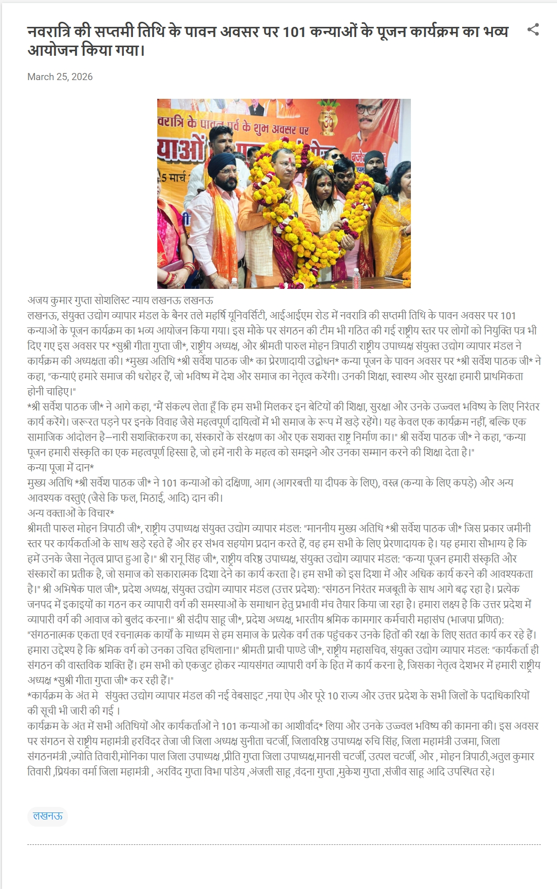 उत्तर प्रदेश कार्यालय: 5/1143 विराम खण्ड गोमती नगर, लखनऊ