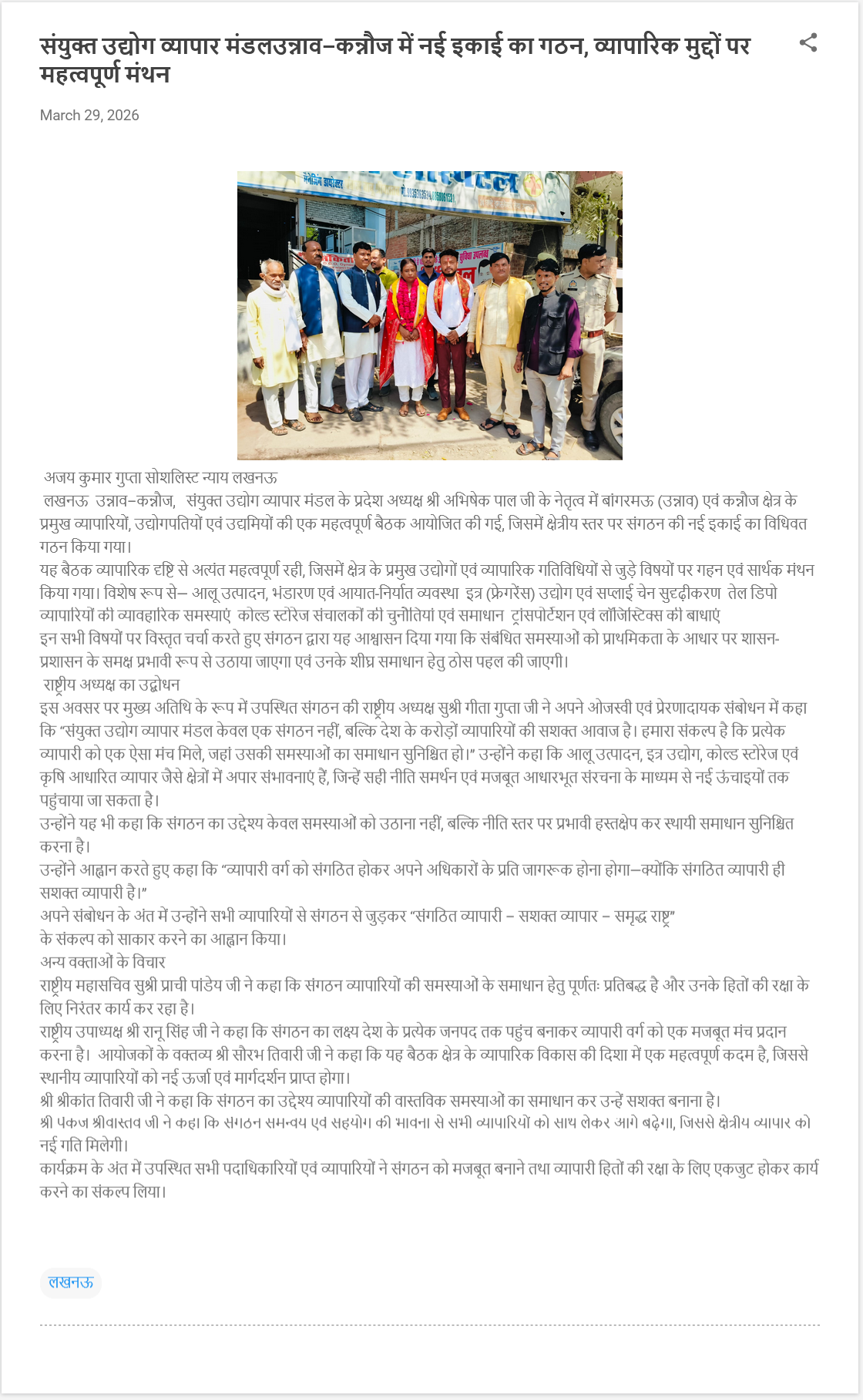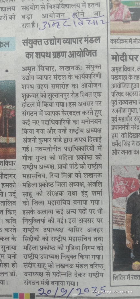 उत्तर प्रदेश कार्यालय: 5/1143 विराम खण्ड गोमती नगर, लखनऊ